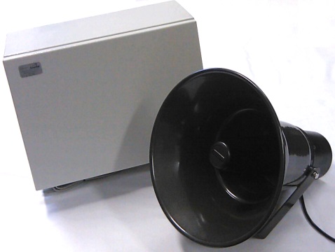 -Рупорный громкоговоритель пластиковый или металлический.